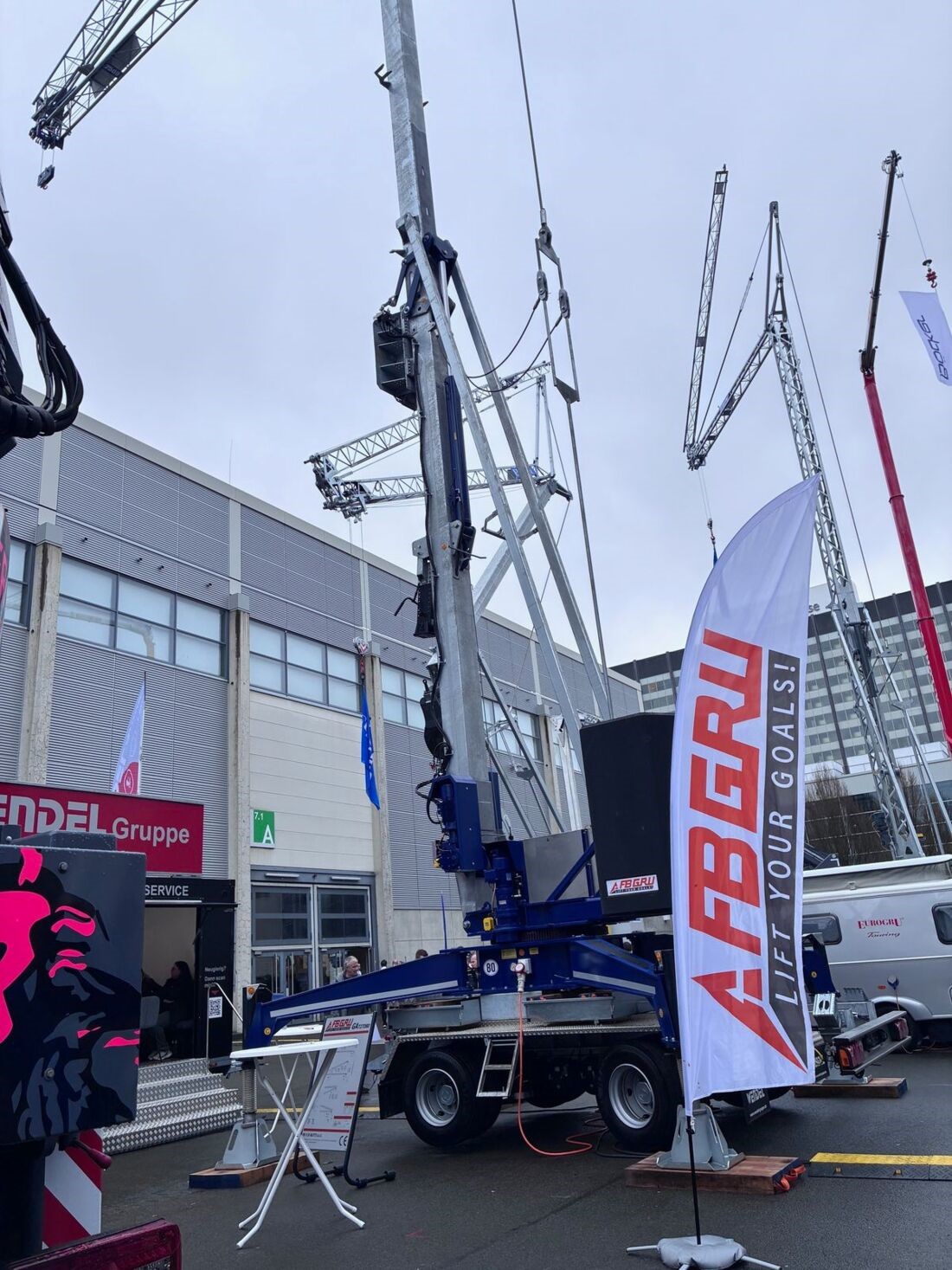 Bereits am Montag haben wir den Schnellbaukran GA727D80 vom Hersteller FB GRU aufgebaut und wurden die restlichen Tage u. a. von unserem neuen regionalen Händler und Servicepartner, der Firma Kurth Autokrane unterstützt.