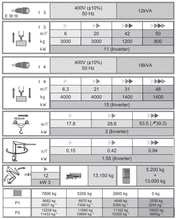 • * Tragkrafterhöhung im 2 Strangbetrieb auf 4.000 kg